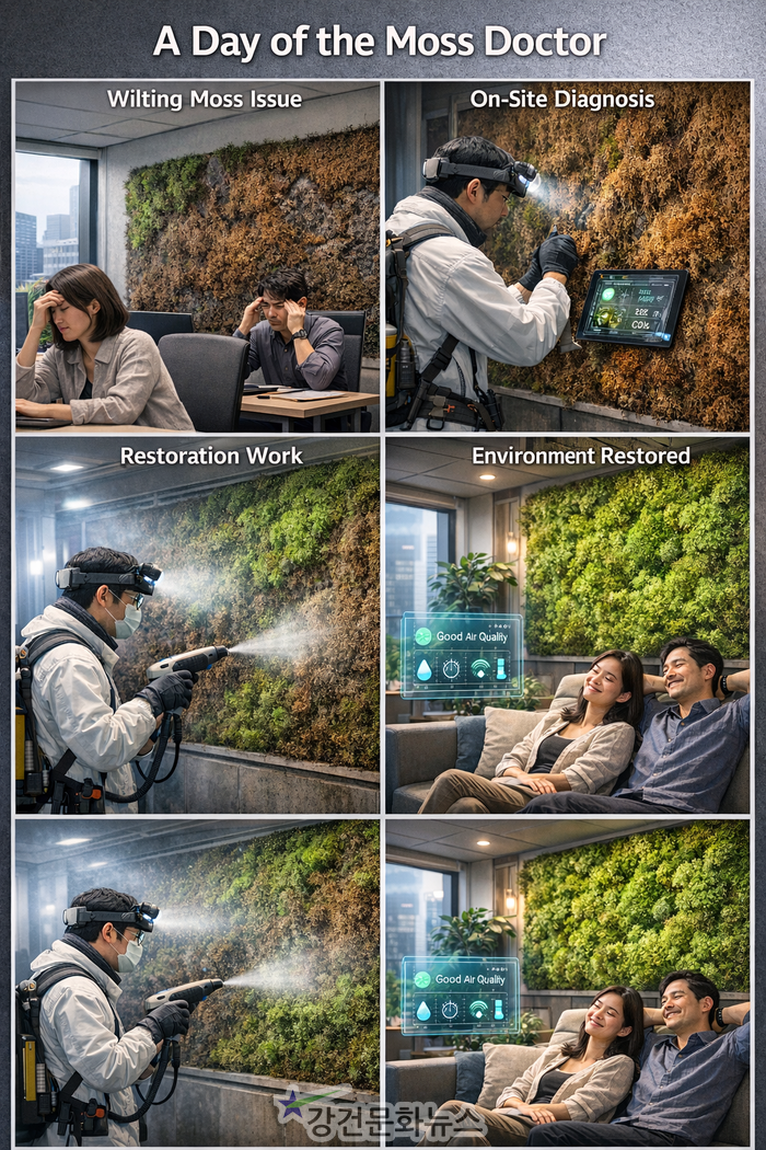 이끼는 일반 식물과 달리 뿌리가 없고 공기 중 수분과 미세 환경에 매우 민감하게 반응하는 특징을 가지고 있다. 이 때문에 이끼는 단순한 장식 요소가 아니라 ‘환경 상태를 읽어내는 생물 센서’로 활용될 수 있다. 미래 도시에서는 미세먼지, 습도 불균형, 실내 공기질 저하, 열섬현상 등의 문제가 지속적으로 증가하게 되는데, 이러한 환경 문제를 정밀하게 감지하고 완화하는 역할을 수행할 수 있는 존재가 바로 이끼이다. 그리고 이러한 이끼의 상태를 분석하고 최적의 생육 환경을 설계하며, 문제가 발생했을 때 치료와 복원을 수행하는 전문가가 바로 미래의 이끼의사이다. 이끼의사의 핵심 역할은 크게 세 가지로 구분된다. 첫째는 진단 기능이다. 이끼의 색 변화, 성장 패턴, 수분 유지 상태, 미세 곰팡이 발생 여부 등을 분석하여 해당 공간의 환경 상태를 해석한다. 예를 들어 이끼가 갈변하거나 수축하는 현상이 발생한다면 이는 단순한 식물 문제를 넘어 공기 건조, 오염, 조도 문제 등 다양한 환경적 이상 신호일 수 있다. 이끼의사는 이러한 변화를 데이터화하고 원인을 추적하는 역할을 수행한다. 둘째는 치료 및 복원 기능이다. 이끼는 매우 섬세한 생물이기 때문에 일반적인 식물 관리 방식으로는 회복이 어렵다. 이끼의사는 수분 공급 방식, 미세 안개 분사 시스템, 자연광과 인공광의 조합, 통풍 구조 등을 정밀하게 설계하여 이끼의 생태 환경을 재구성한다. 또한 병든 이끼를 분리하고 건강한 개체를 증식하여 복원하는 기술도 요구된다. 셋째는 설계 및 적용 기능이다. 이끼의사는 단순히 관리에 그치지 않고, 건축물 내부와 외부 공간에 이끼를 활용한 생태 시스템을 설계한다. 예를 들어 병원에서는 환자의 심리 안정과 공기 정화를 위한 이끼 벽을 구축할 수 있으며, 학교에서는 교육용 생태 관찰 공간으로 활용할 수 있고, 사무실에서는 스트레스 완화와 집중력 향상을 위한 바이오필릭 디자인 요소로 적용할 수 있다. 더 나아가 스마트시티에서는 이끼 기반 환경 센서 네트워크를 구축하여 도시 전체의 공기 질을 실시간으로 모니터링하는 시스템으로 확장될 수 있다. 이러한 직업이 등장하기 위해서는 융합형 교육과정이 필수적이다. 식물학, 미생물학, 환경공학, 실내공기질 관리, 스마트센서 기술, 데이터 분석, 그리고 공간디자인까지 결합된 교육 체계가 요구된다. 또한 국가자격증 체계로 발전시킨다면 3급은 기본 관리 및 유지, 2급은 환경 진단 및 설계 보조, 1급은 생태 시스템 설계 및 컨설팅을 수행하는 구조로 구분할 수 있다. 현재 우리 사회는 공기 질 문제와 실내 환경 관리에 대한 관심이 빠르게 증가하고 있지만, 이를 ‘생태 기반으로 관리하는 전문 직군’은 아직 부재한 상황이다. 대부분 공기청정기나 환기 시스템과 같은 기계적 해결에 의존하고 있으며, 자연 생태를 활용한 정밀 관리 시스템은 초기 단계에 머물러 있다. 이로 인해 지속가능성과 정서적 안정이라는 두 가지 측면을 동시에 충족시키지 못하는 한계가 존재한다. 그러므로 보건복지부와 환경부는 공동으로 이끼 기반 생태 치유 및 환경 관리 전문가 양성 사업을 추진할 필요가 있다. 병원, 요양시설, 공공기관, 학교 등에 시범적으로 이끼 생태 시스템을 도입하고, 이를 관리할 전문 인력을 양성함으로써 새로운 일자리 창출과 동시에 국민 건강 증진이라는 두 가지 목표를 동시에 달성할 수 있다. 즉, 이끼의사는 단순한 식물 관리 직업이 아니라, 인간과 환경을 연결하는 ‘초미세 생태 조율 전문가’로 자리 잡게 될 것이다. 이들은 보이지 않는 환경의 변화를 가장 먼저 감지하고, 자연을 통해 이를 회복시키는 역할을 수행하며, 미래 도시에서 인간의 삶의 질을 근본적으로 끌어올리는 핵심 직업군으로 성장하게 될 가능성이 매우 높다. 이끼의사가 국가자격으로 제도화된다는 것은 단순히 새로운 직업 하나를 만드는 수준을 넘어, 인간의 삶을 둘러싼 환경 관리 방식 자체를 근본적으로 전환하는 계기가 된다. 지금까지의 환경 관리는 공기청정기, 환기 시스템, 필터 장치와 같은 기계 중심의 해결 방식에 의존해 왔다. 그러나 이러한 방식은 유지 비용이 높고, 지속가능성 측면에서 한계를 가지며, 무엇보다 인간의 정서적 안정까지 동시에 충족시키기에는 부족한 구조를 가지고 있다. 이러한 한계를 극복하기 위해 등장하는 개념이 바로 ‘생태 기반 환경 관리’이며, 이 중심에 이끼의사가 위치하게 된다. 이끼는 매우 미세한 환경 변화에도 민감하게 반응하는 생물이다. 공기 중 습도, 온도, 미세먼지, 오염 물질의 변화에 따라 색이 변하거나 성장 속도가 달라지는 특징을 가진다. 이러한 특성은 이끼를 단순한 식물이 아니라 ‘살아있는 환경 센서’로 기능하게 만든다. 따라서 이끼의사는 이끼의 상태를 통해 공간의 보이지 않는 변화를 읽어내고, 그 원인을 분석하며, 다시 건강한 환경으로 회복시키는 역할을 수행하는 전문가라 할 수 있다. 국가자격으로서 이끼의사가 자리 잡기 위해서는 체계적인 등급 구조와 교육 시스템이 필요하다. 초급 단계에서는 이끼의 기본 생리와 관리 방법을 중심으로 교육이 이루어